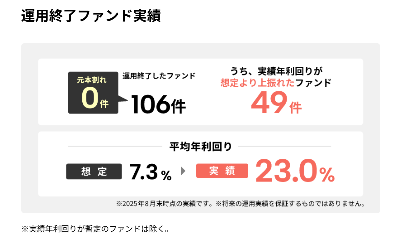 過去の案件でも、想定よりも利回りが上振れしたファンドはたくさんあるよ!