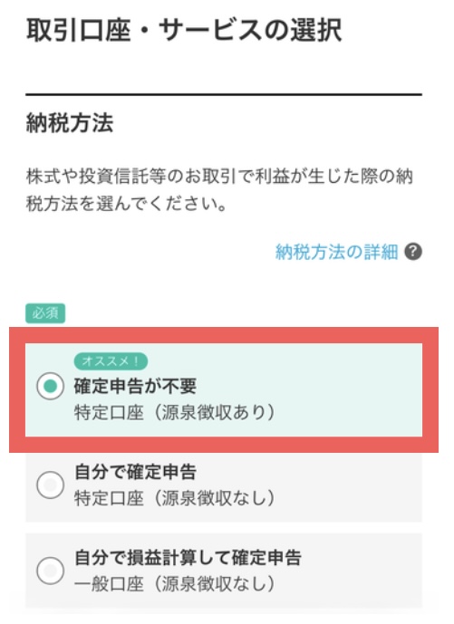 - 源泉徴収なし…確定申告が必要。証券会社が申告に必要な書類を作成するため負担軽減。