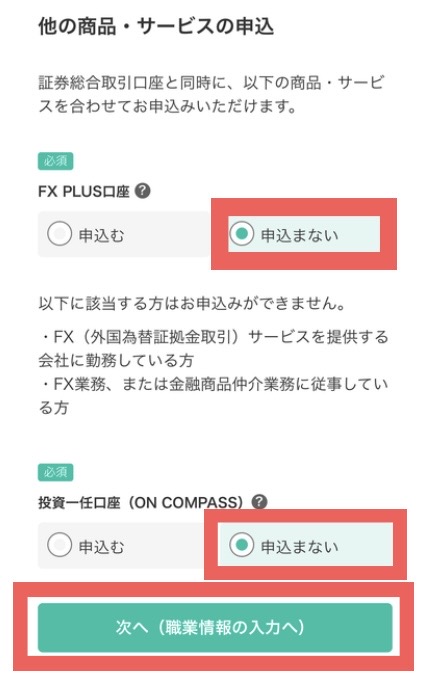 ・他の商品・サービスの申込:ここは2箇所とも「申し込まない」でOK!