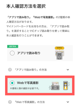 本人確認は「アプリで本人確認」か「Webで本人確認」から選べるよ♪