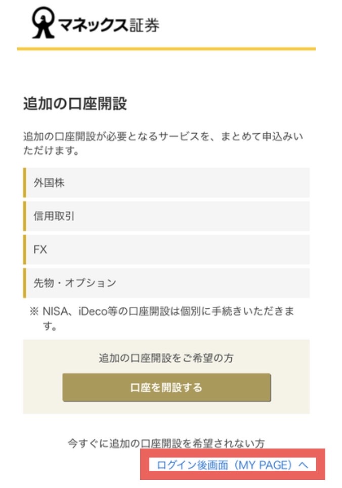 ・画面下の「ログイン後画面(MY PAGE)へ」をタップして完了!