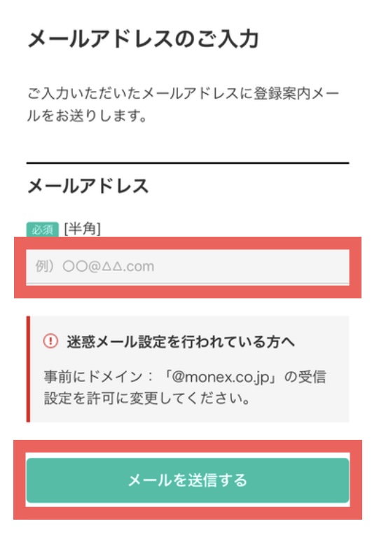 ・ご自身のメールアドレスを入力し、「メールを送信する」をタップ
