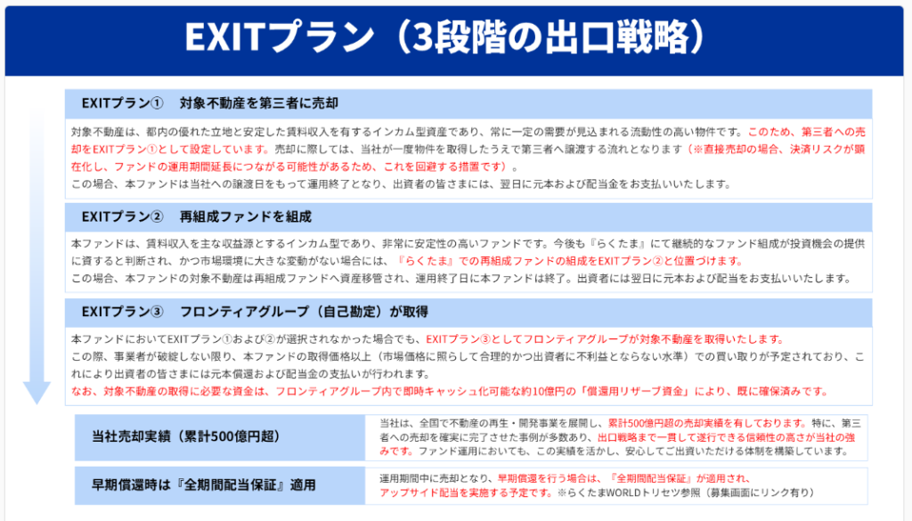 フロンティアグループ内には10億円の「償還用リザーブ(買い取りのための準備金)」があるから安心できる仕組み!