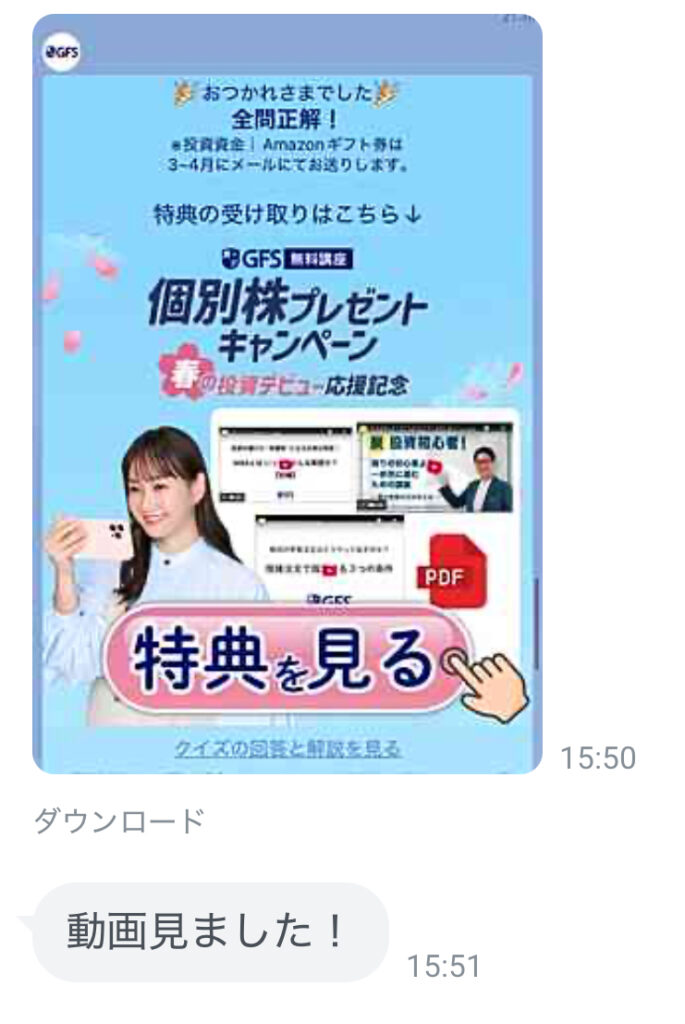 しつこく電話がかかってくる⋯なんて強引な勧誘は一切ないけど、メールやLINEで運営元の有料講座「GFS」の案内が来ることはある。
