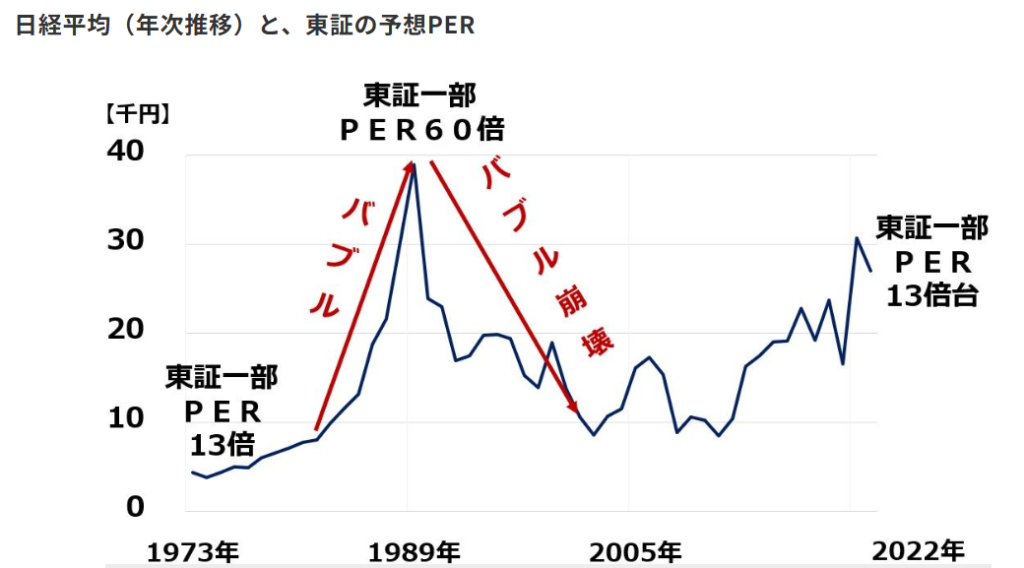 でも、1989年のバブルの時のなんとPERが60倍もあったんだ😳