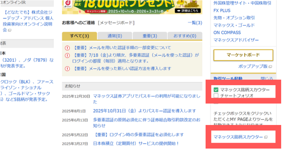 マネックス証券”の口座を無料で作れば、銘柄スカウターが使えるようになるから