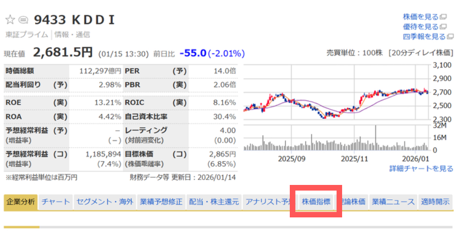 今はKDDIの本来の実力よりも、過剰に期待されて割高になってる可能性があるかも💦