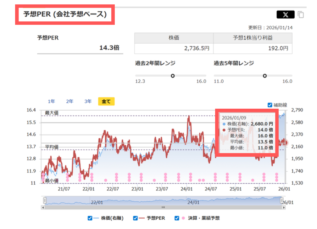 過去平均(13.5倍)よりも今(14.0倍)の方が高いということは?